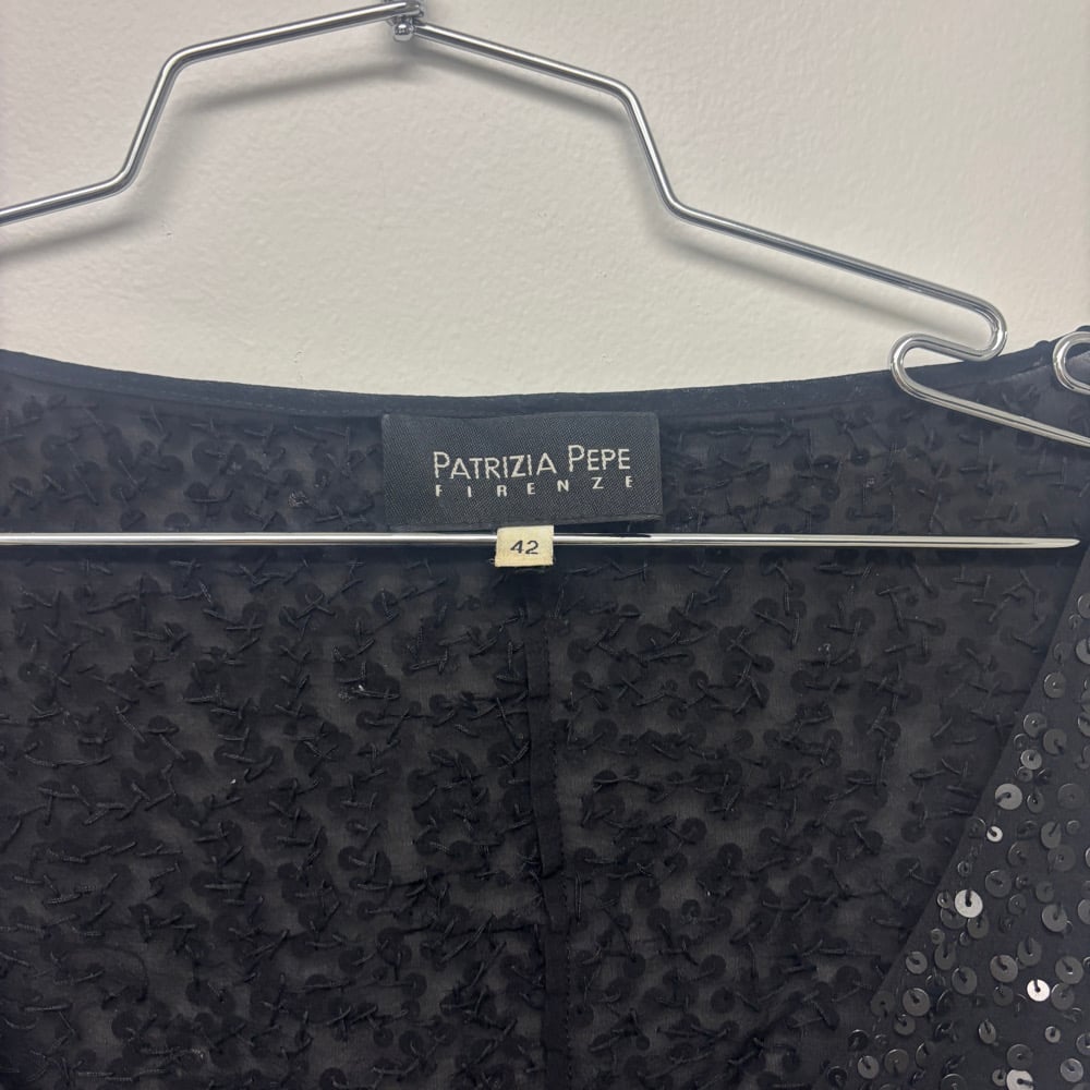 patrizia pepe silk and sequin wrap top with knit cuffs